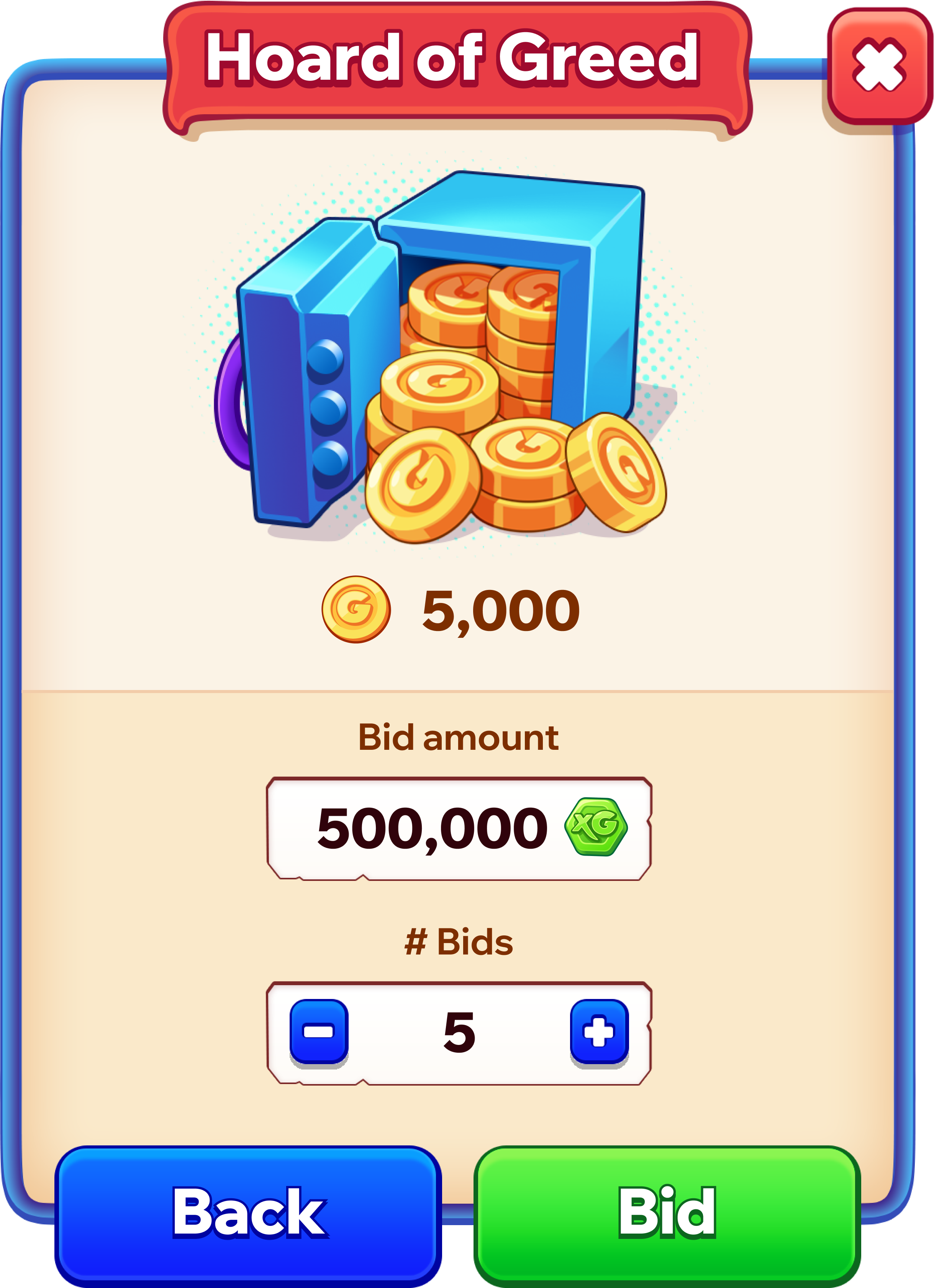Players can spend xGOLD to win $GOLD by playing a blind auction bidding mini game.