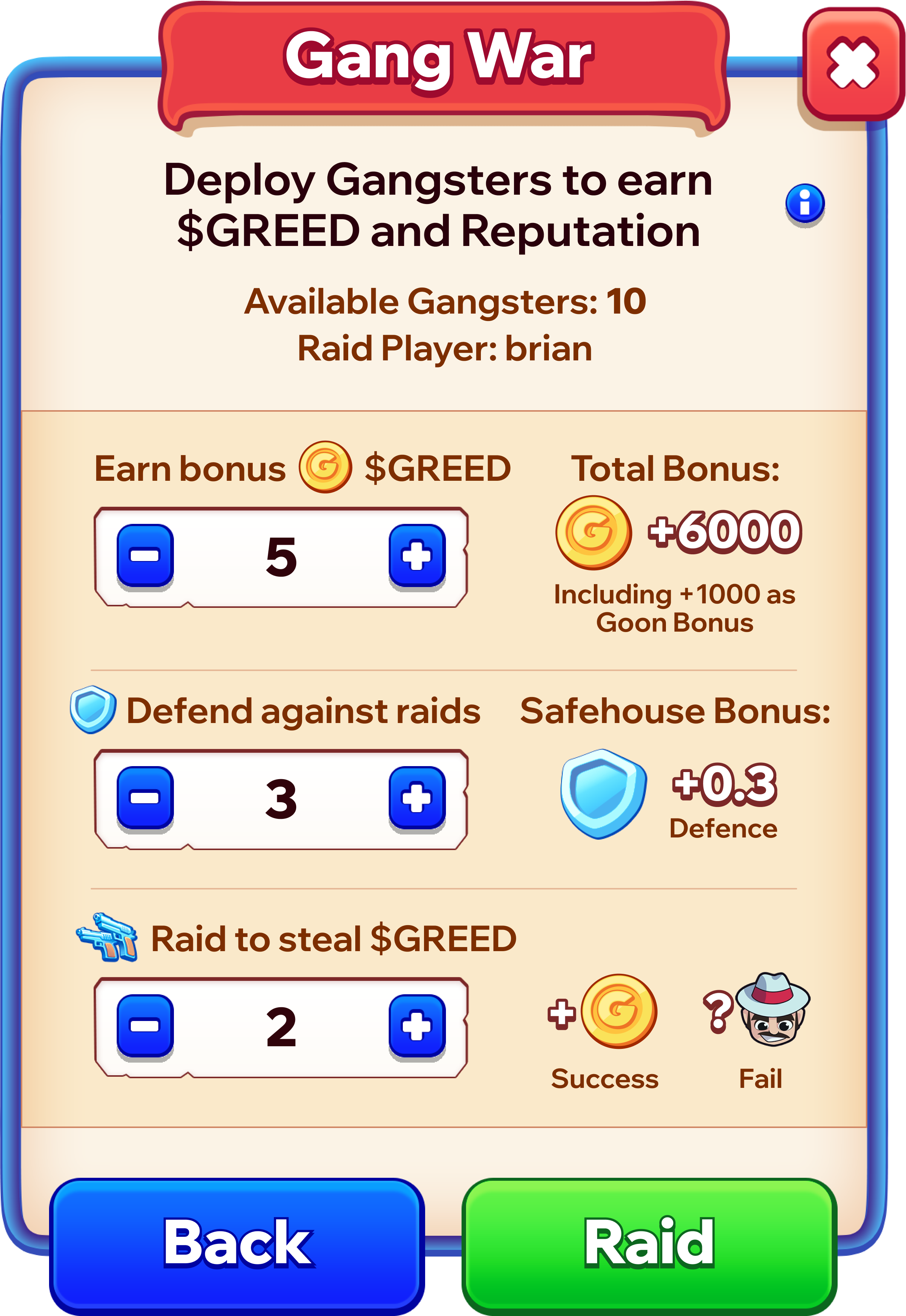 Gangs with more raid power can get more rewards but also take on bigger risk.