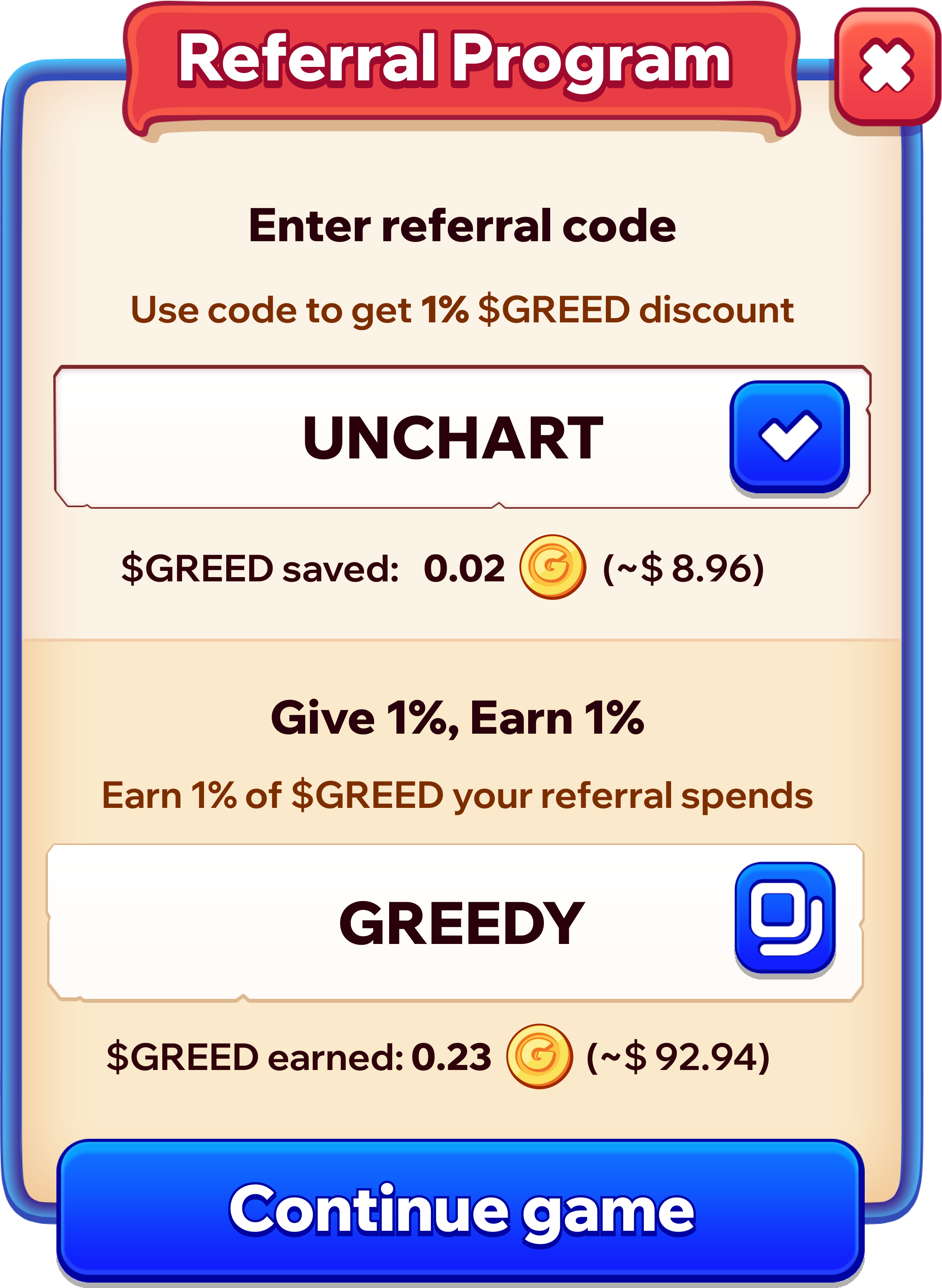 Refer friends to give them a discount on $GOLD spent, and also get part of what they spend