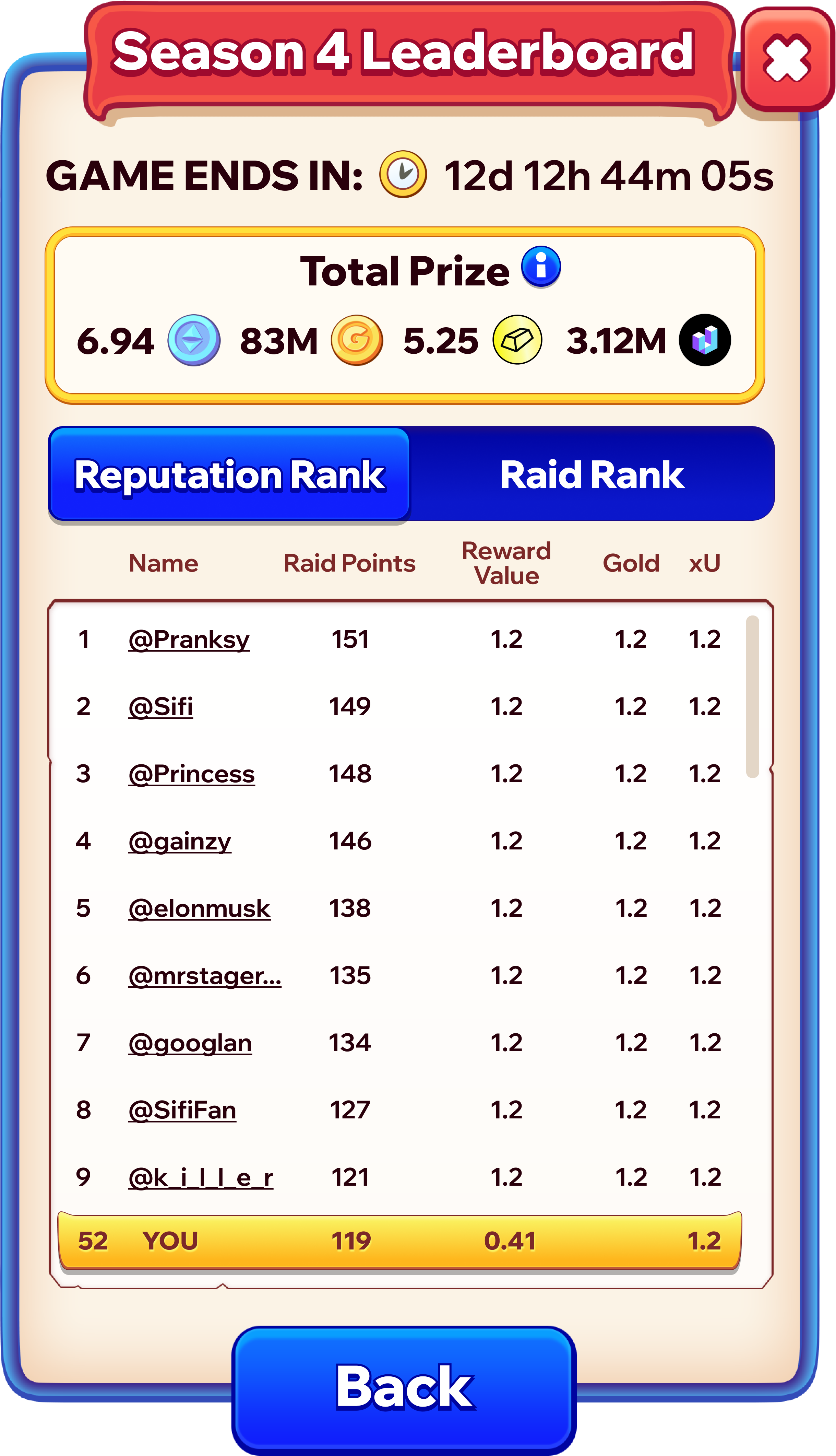 Top players ranked by reputation and raid points will earn a share of rewards. Rewards typically include:
